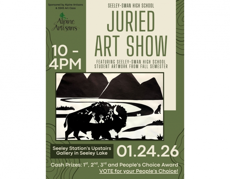 Come to the Seeley Station upstairs gallery this Saturday, January 24, for an art show by the talented SSHS students. This is a juried show for the top three works, and you can vote for the People's Choice award. There will be cash prizes!